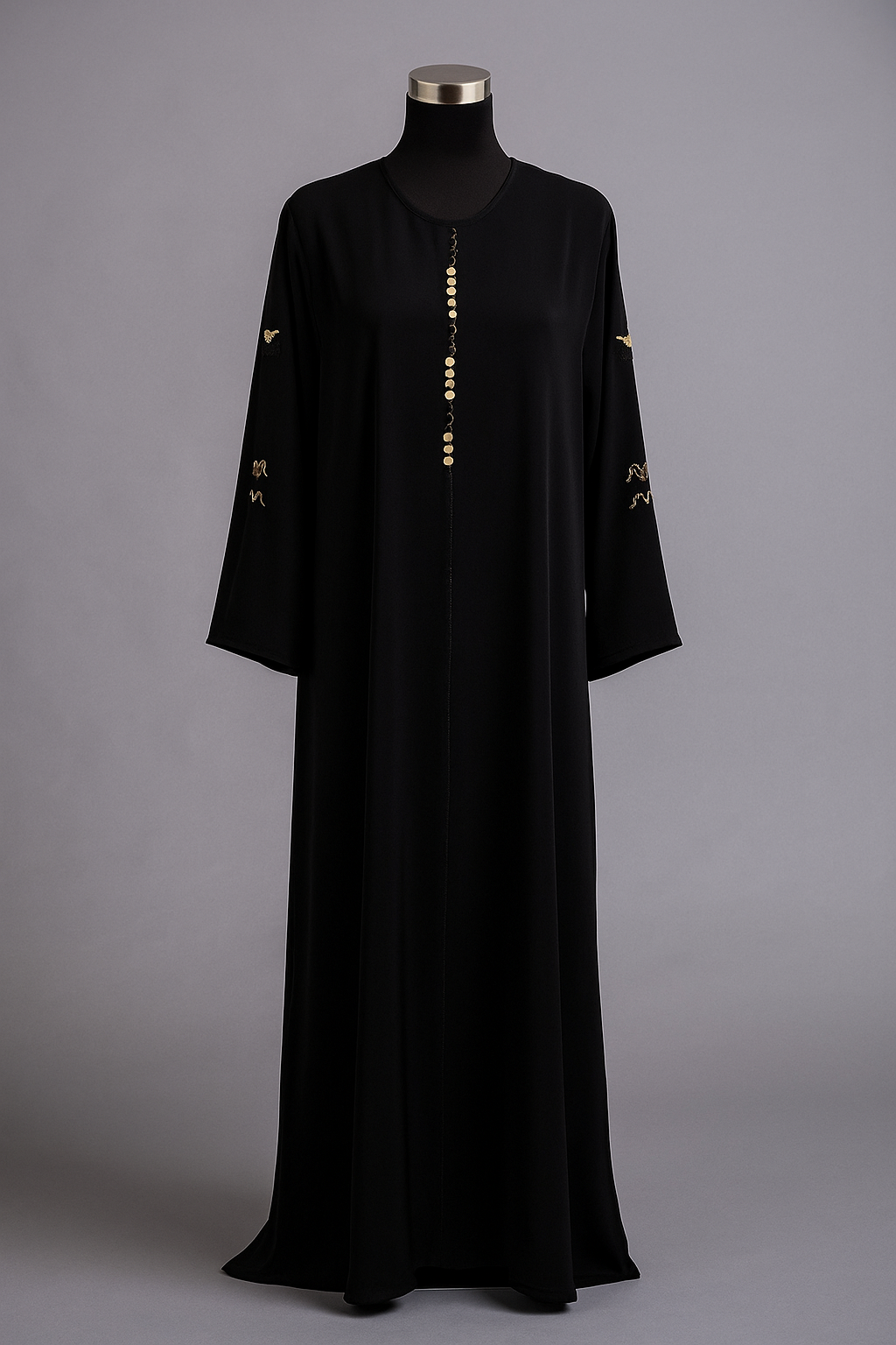 The sample image shows the one-size-fits-all model. The dimensions are 126 cm long x 70 cm wide. Please note that abayas can also run shorter, which is normal.